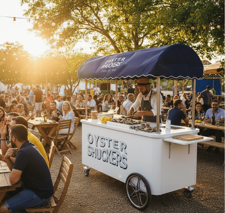 Notre stand nomade ouvre les huîtres devant vos invités. Formules simples, service pro, partout en France.