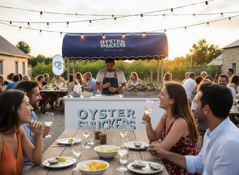 Mariages, soirées d’entreprise ou événements privés, notre stand se déplace partout en France pour ouvrir les huîtres sous vos yeux et créer un moment unique.